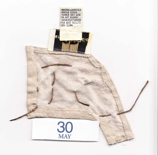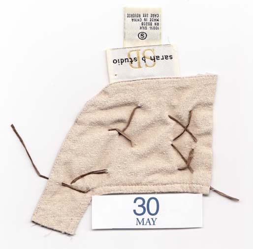 A stitch in the dark on a deconstructed dress facing with paper twine.