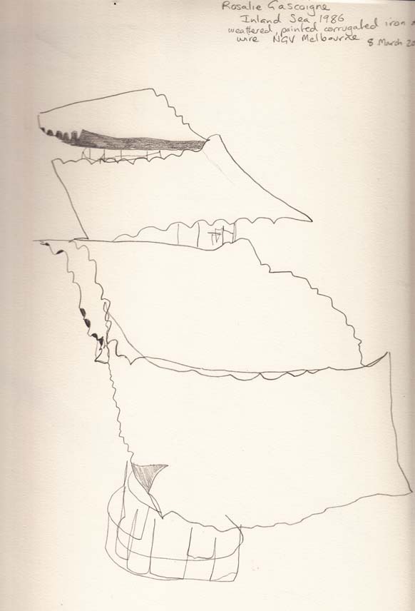 I really enjoyed this exhibition, which gives a succinct summary of some of Australia’s best landscape artists, both Indigenous and non-Indigenous. I loved seeing Rosalie Gascoigne and Rover Thomas rubbing artistic shoulders. In the side room at the back right of the gallery is a great display of the work of Lorraine Connelly-Northey (Waradgerie and Irish background), whose re-interpretation of traditional Indigenous forms is continually innovative and exciting.