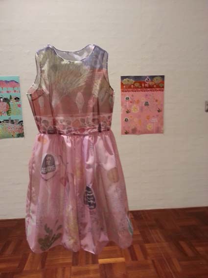 I found the work engaging and thoroughly interesting. I was immediately drawn to the textile works of Annie Trevillian (one of my former teachers at the ANU) whose works represented the divergent lives of herself and her twin sister. Trevillian used digital printing to turn studies into frocks reflecting on their lives in Canberra and Oodnadatta.
