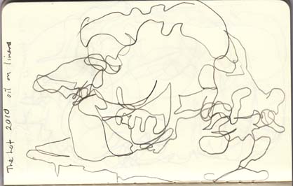 My first sketch showed me that this was perhaps more challenging than I had imagined. The two lines of wind turbines, drawn above, represented all the turbines I could see. I broke the line in two to fit them all on the page. Scale is clearly an issue. I really need to get closer to the turbines to be able to draw them as more than stars on sticks. And the wretched things kept moving all the time! Anyway a bit of research on the web has revealed that this wind farm holds open days so I’ve signed up to join a tour at some unspecified time in the future. Further wind turbine drawings will wait.