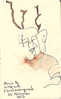 Drawing of Brett Whiteley’s Shark (male), 1966, in front of Unfinished beach poltypch, not dated. 15 december 2013.