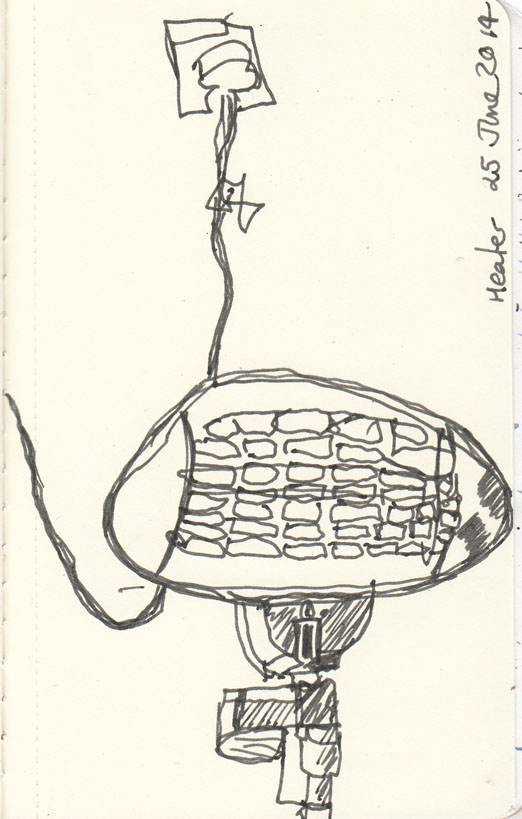 Heater at the coffee shop, pen and ink, 25 June 2014.
