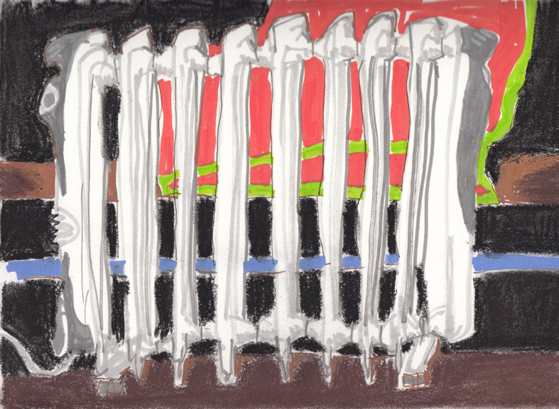 Heater, acrylic paint marker and conte crayon, 28 June 2014.