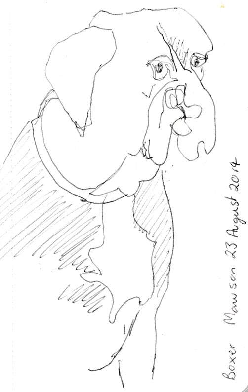 Portrait, pen and ink and acrylic marker, 6 September 2014