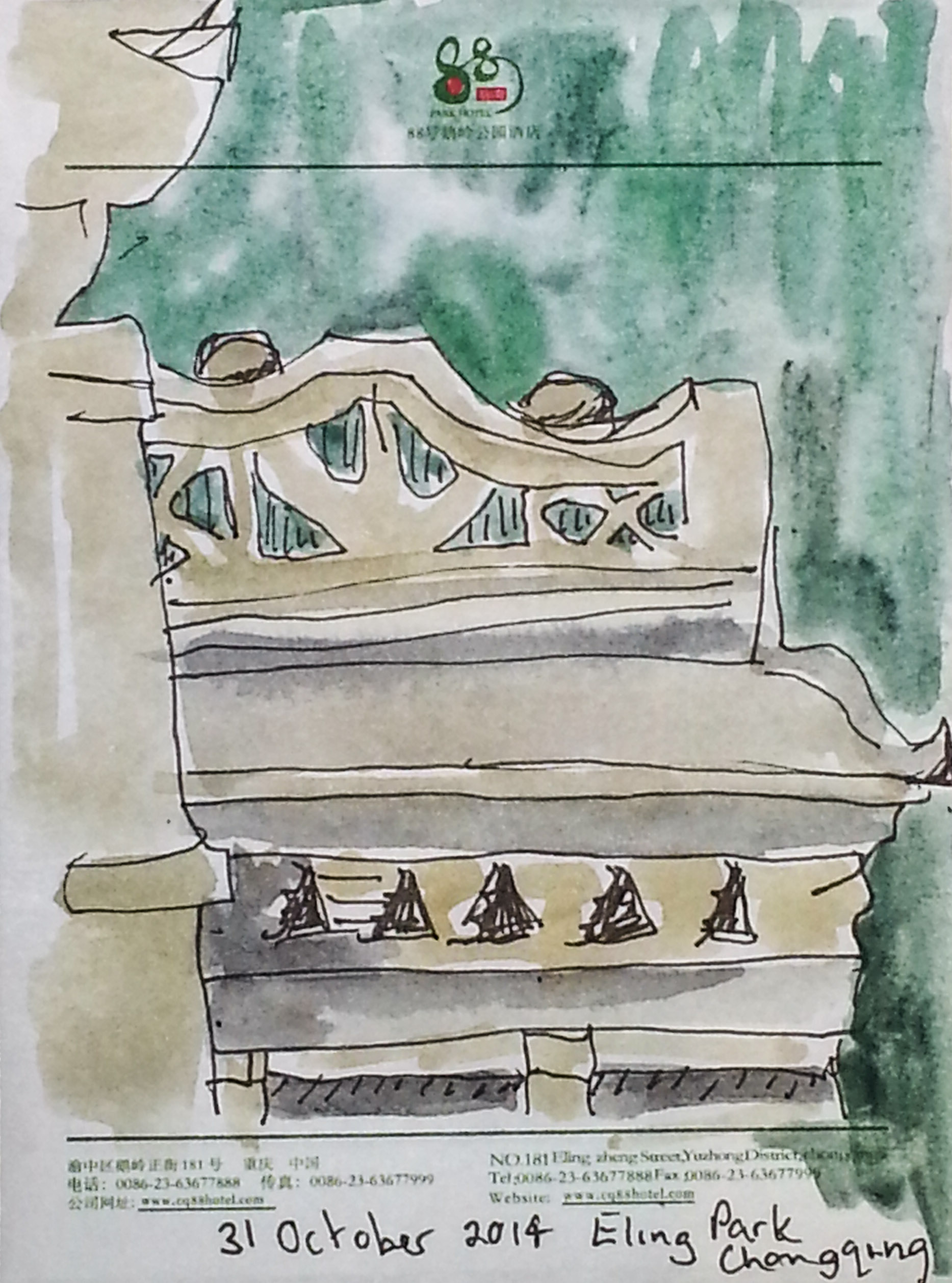 The hotel we stayed in last night is located next to Erling Park, in the Yuzhong District of Chongqing. We walked in the park after breakfast and saw many local people practicing their Tai Chi.