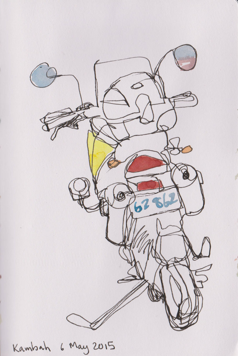 Thankfully another patron parked their motorbike in a convenient position for me to draw.