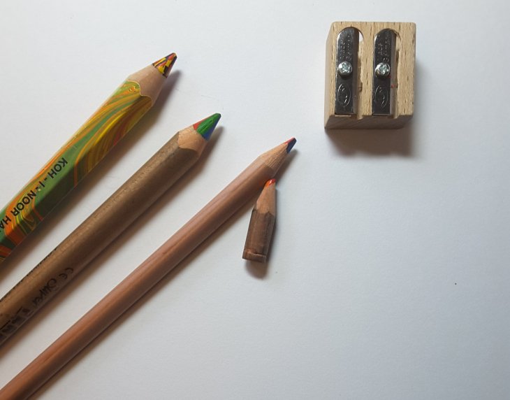 Left to right are the 3 colour Koh-i-Noor Magic Pencil; the 4 colour Lyra ‘Super Ferby’ and last the remains of my 7 colour pencil next to it’s replacement. Yes! I found the ‘rainbow’ pencil online. Apart from the shape of the barrel, the original is round and the new one is a rounded triangle, there seems to be no difference between the two.