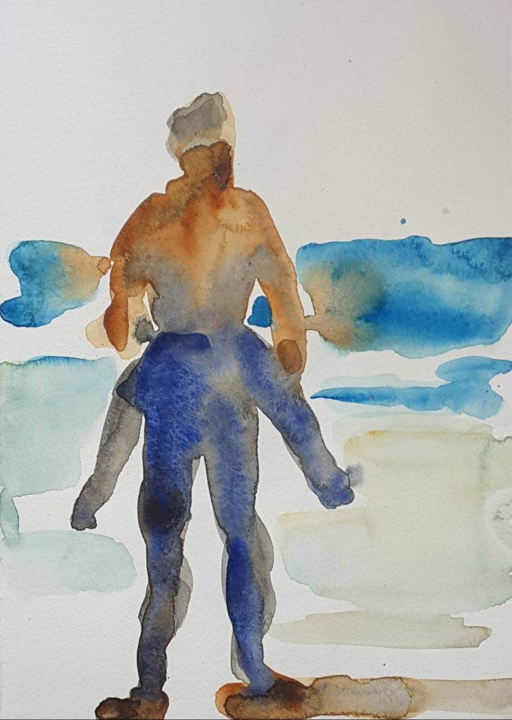 Like a life-drawing class the length of the poses changes. Some people stand still for some time looking out to sea,