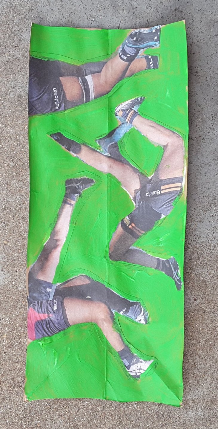 I was undecided about painting around these last collages. But I probably should to at least unify it with the other two works.