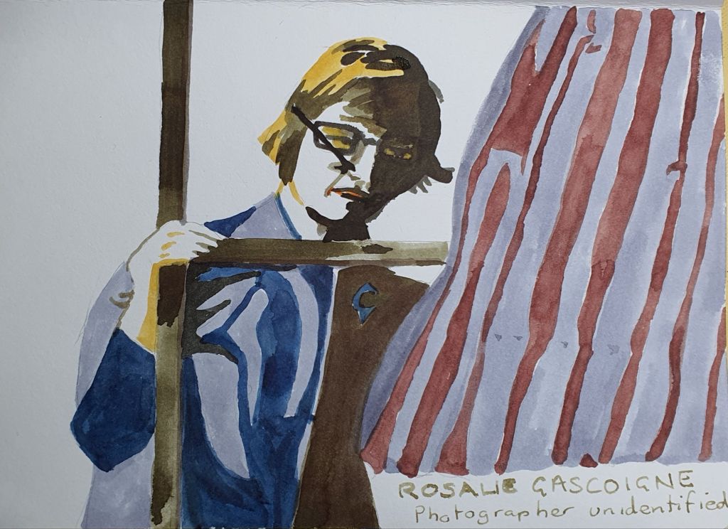 In 1959 three of Boty’s works were selected for the Young Contemporaries exhibition and in 1960 one of her stained glass works was selected for an Arts Council exhibition Modern Stained Glass. You can see her stained glass self portrait in the National Portrait Gallery London.
