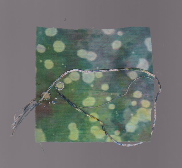 Various salvaged, donated and bought embroidery threads on found microfibre cloth.