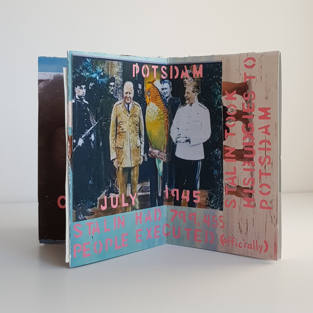 The Book of Cursive A, ink on Japanese paper, 2020Filter and Interpret Your Answers, 2020, Repurposed page and acrylic markerPotsdam, from the mini-zine Churchill and Stalin, Bonding over Budgies, 2020Book of Shadows, Loungeroom Residency 2019I don’t like strangers, original poem by Claudia McGill, (Bus Seat Assignment), 2019