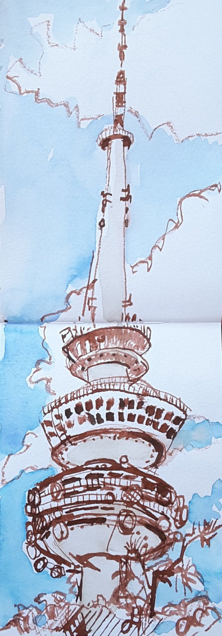 For the first time since April 2012 I’ve climbed Mt Taylor. This is a major achievement for me post knee replacement. I knew I would have some places to stop and rest along the track so I took my small sketchbook to make some drawings on the way.