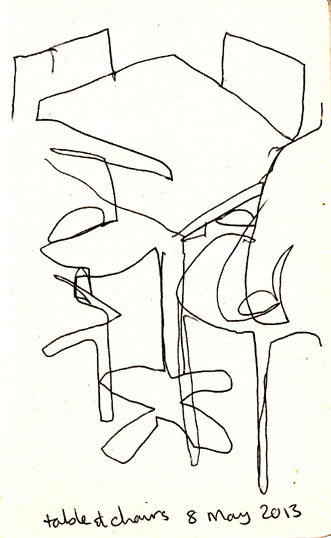 One artist whose book of sketches is one I’ll be tracking down to add to my library is Kevin Connor. Connor says “when you are up against a brick wall or in doubt, draw!” – he also suggests that the best place to draw from is with your back to a wall, preferably in a friendly coffee shop or bar, so no one can look over your shoulder! Inspired by the intense lines in Connor’s drawings I took up my own pen to make this quick sketch of my coffee mug.