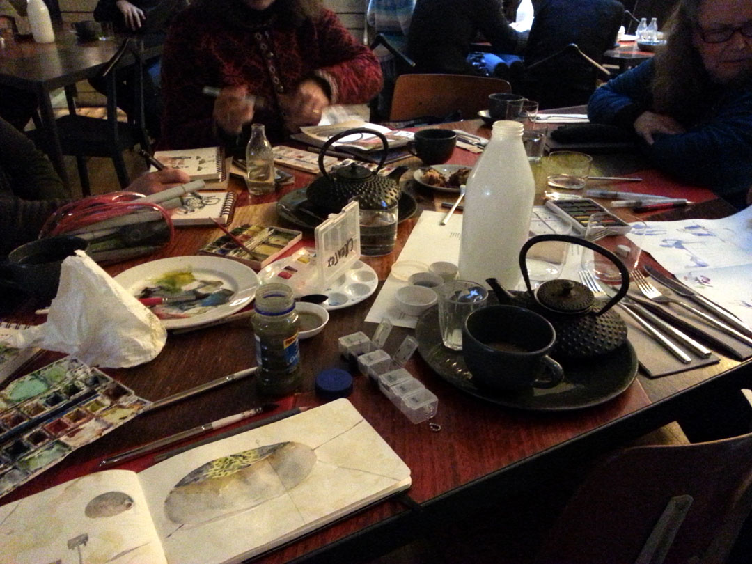 I thought we might have had time to sketch some of the tasty treats that people brought along to share for lunch, but they all disappeared before anyone could even get their books out!