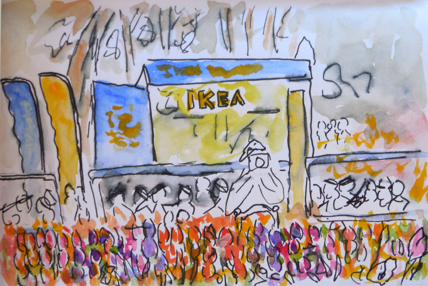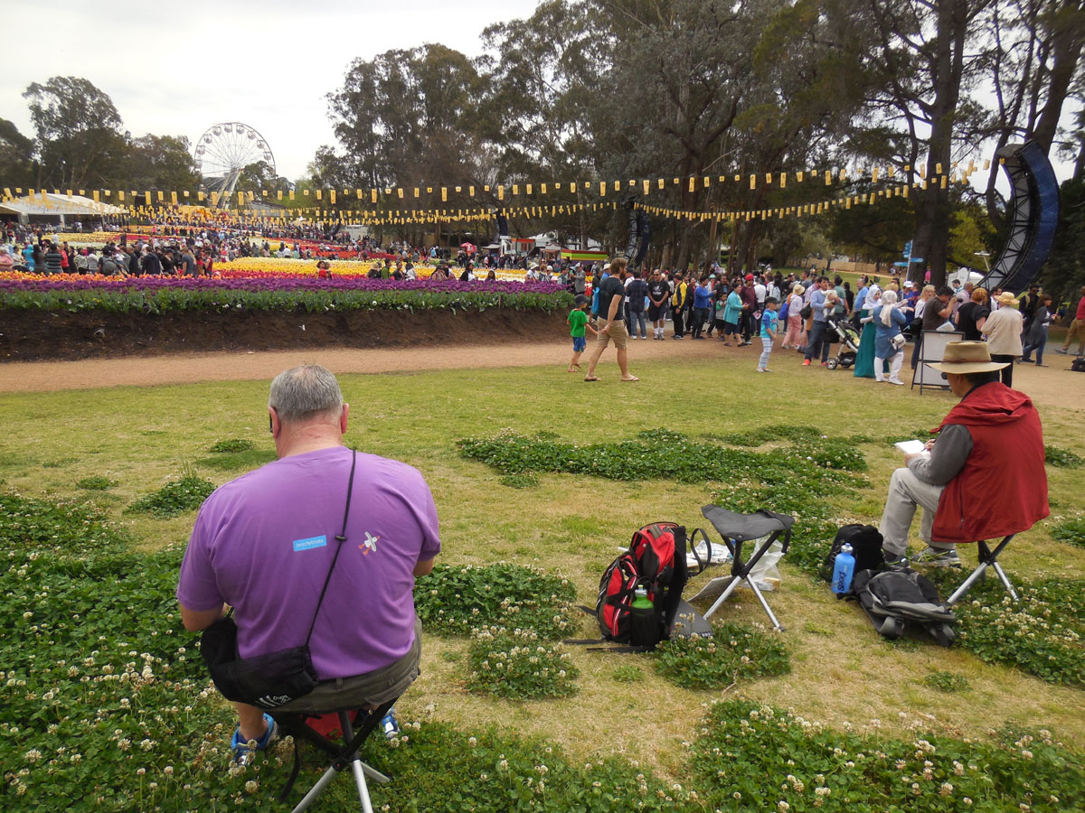 Today the Canberra Sketcher’s Group braved the massed tulips, not to mention the crowds, for our October sketch outing. It took awhile for us to collect ourselves as the parking was problematic, but eight of us did manage to meet up and get to work.