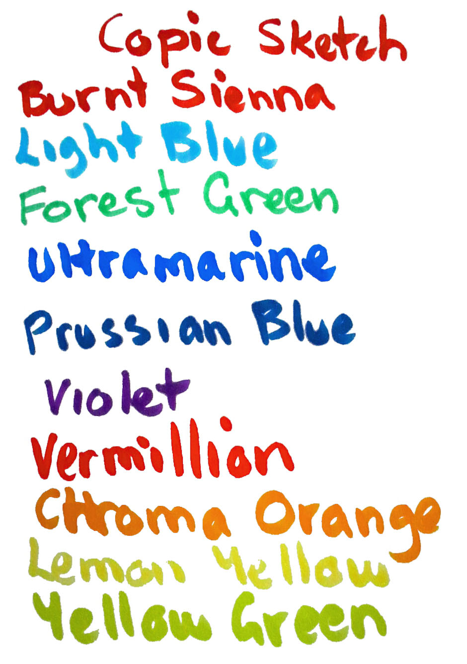 Looking at these again I think the Copic Sketch markers work quite well – however because the paper is only thin the markers bleed right through the page making it impossible to use both sides as intended by the manufacturers.