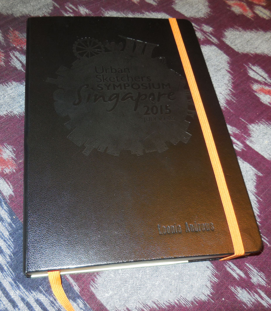 In our ‘goodies’ bag at the 2015 Urban Sketchers Singapore Symposium was a Leuchtturm 1917 + Whitelines Link ® A5 notebook. It was cool. It had the Symposium logo and our names embossed on it – wow! embossed! our own names! It had thin grey paper inside with white marks on it – yeah whatever – and it had an orange bookmark and an orange elastic band for the cover (orange is my favourite colour). Then I heard that this book had something to do with an app and a really great prize for anyone who entered some competition. I thought a big prize from Leuchtturm sounded great and all I had to do was figure out how to enter. Too easy!