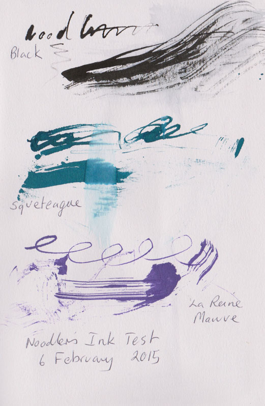 Noodler’s inks testing, Black, the just about unpronounceable Squeteague and La Reine Mauve