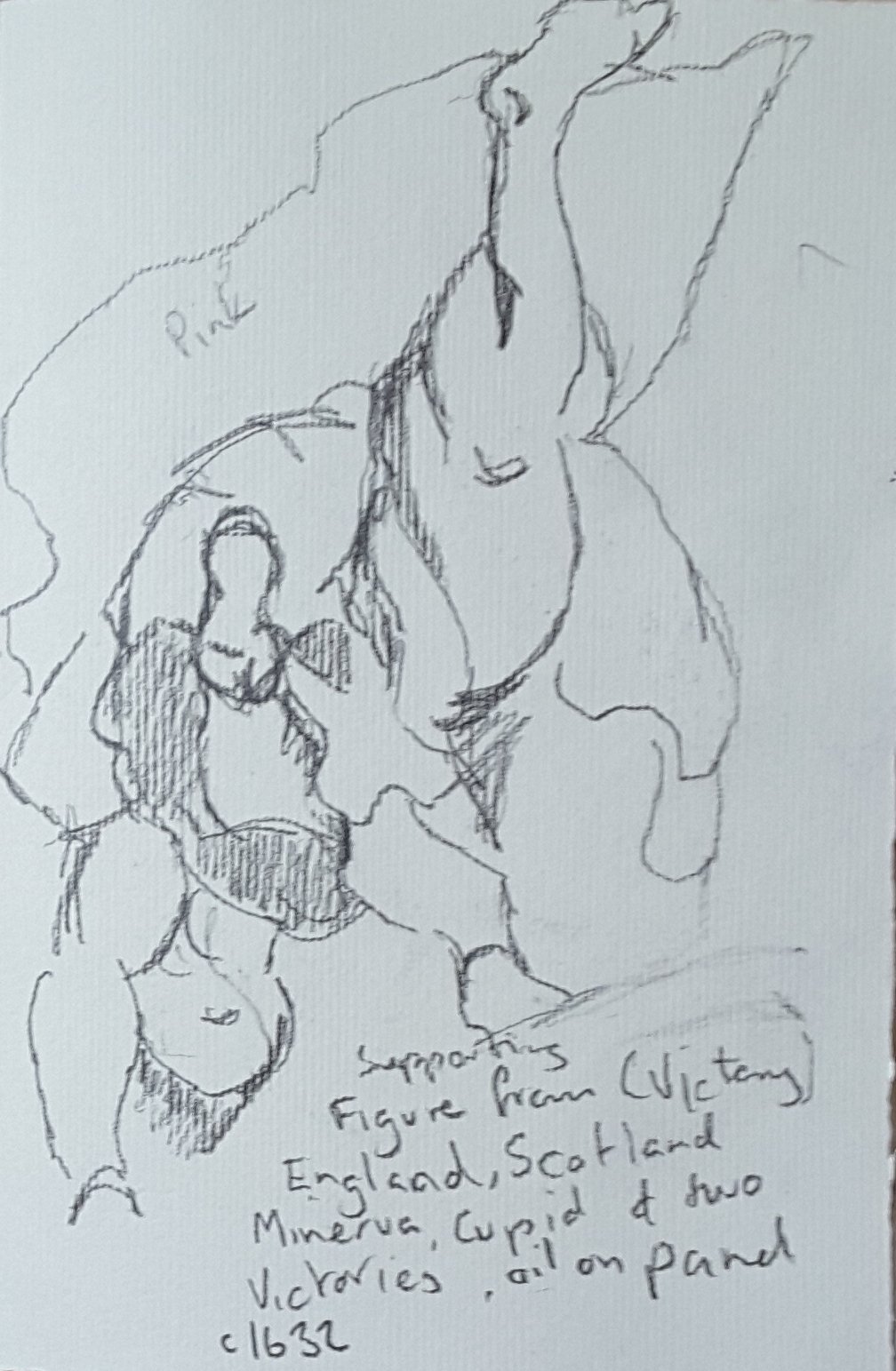 The other sketch I drew was one of Goya’s ‘black’ paintings. These were originally painted on the walls of his house and later transferred onto a backing so they could be hung. These are strange and disturbing works. Their meanings have been the subject of some pretty varied interpretations over the years since they were made public.