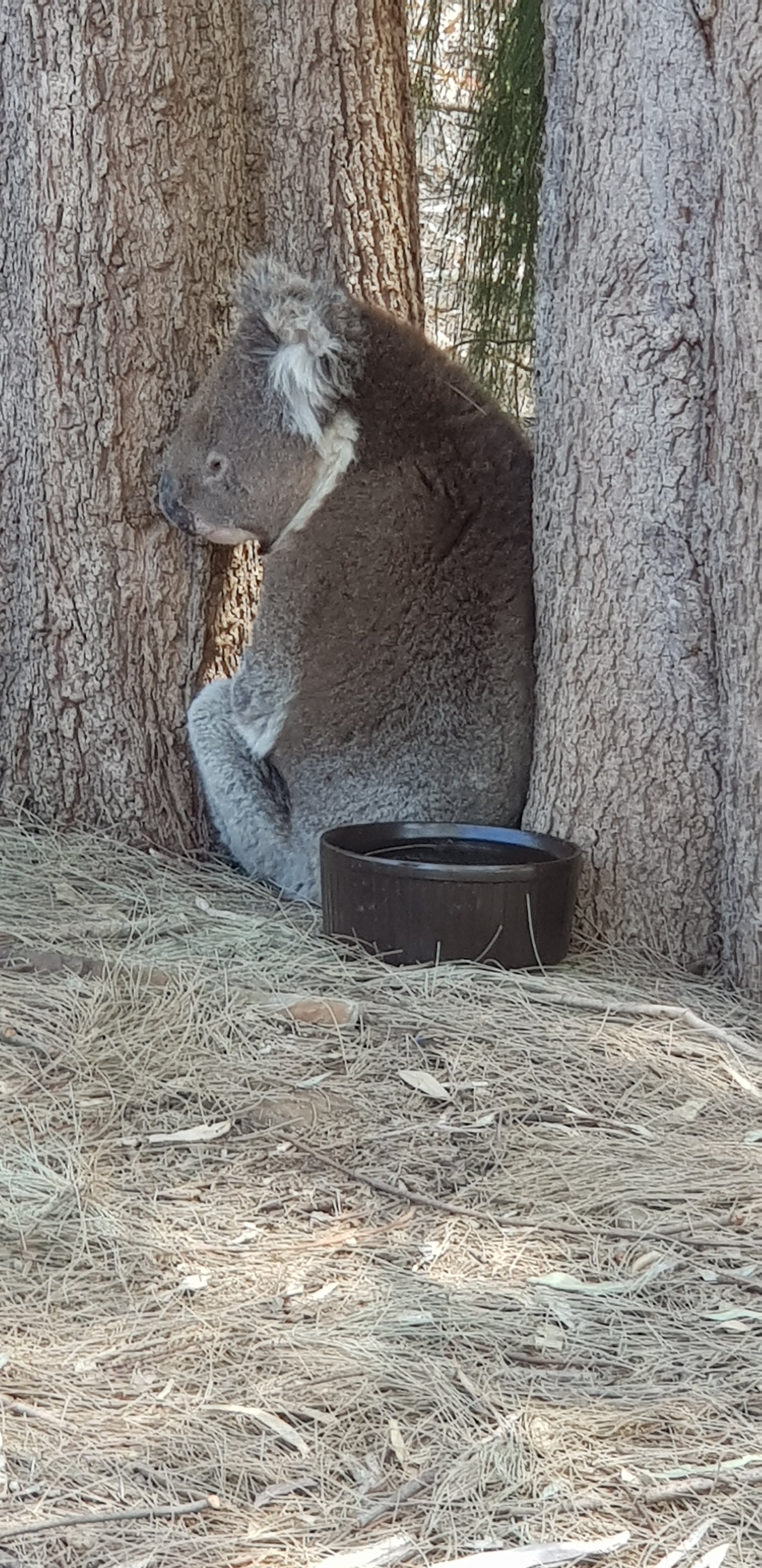 Koala and garbage bin. The latter designed with a cover to keep possums and other inquisitive animals from getting into the bins.