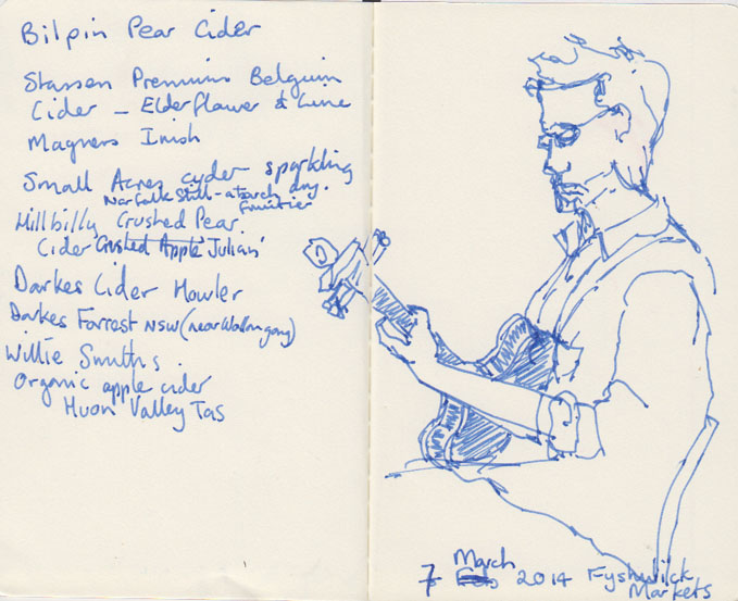 Relief came on Friday as we took an hour at lunch to drop by the Fyshwick Markets where there was an ‘apple and pear week’ promotion, which included a tasting of some interesting ciders. Oooh arghh, oooh arghh, I hear you say! To add to the atmosphere two guitarists were playing some very easy sounding jazz – not that we needed encouragement to sample the ciders on offer.