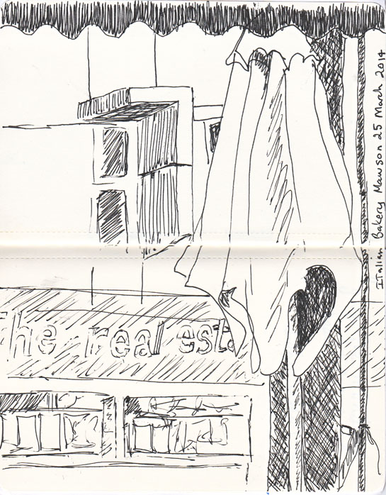 Back to the Bakery the next day, looking up the street in the opposite direction to my last Bakery drawing.