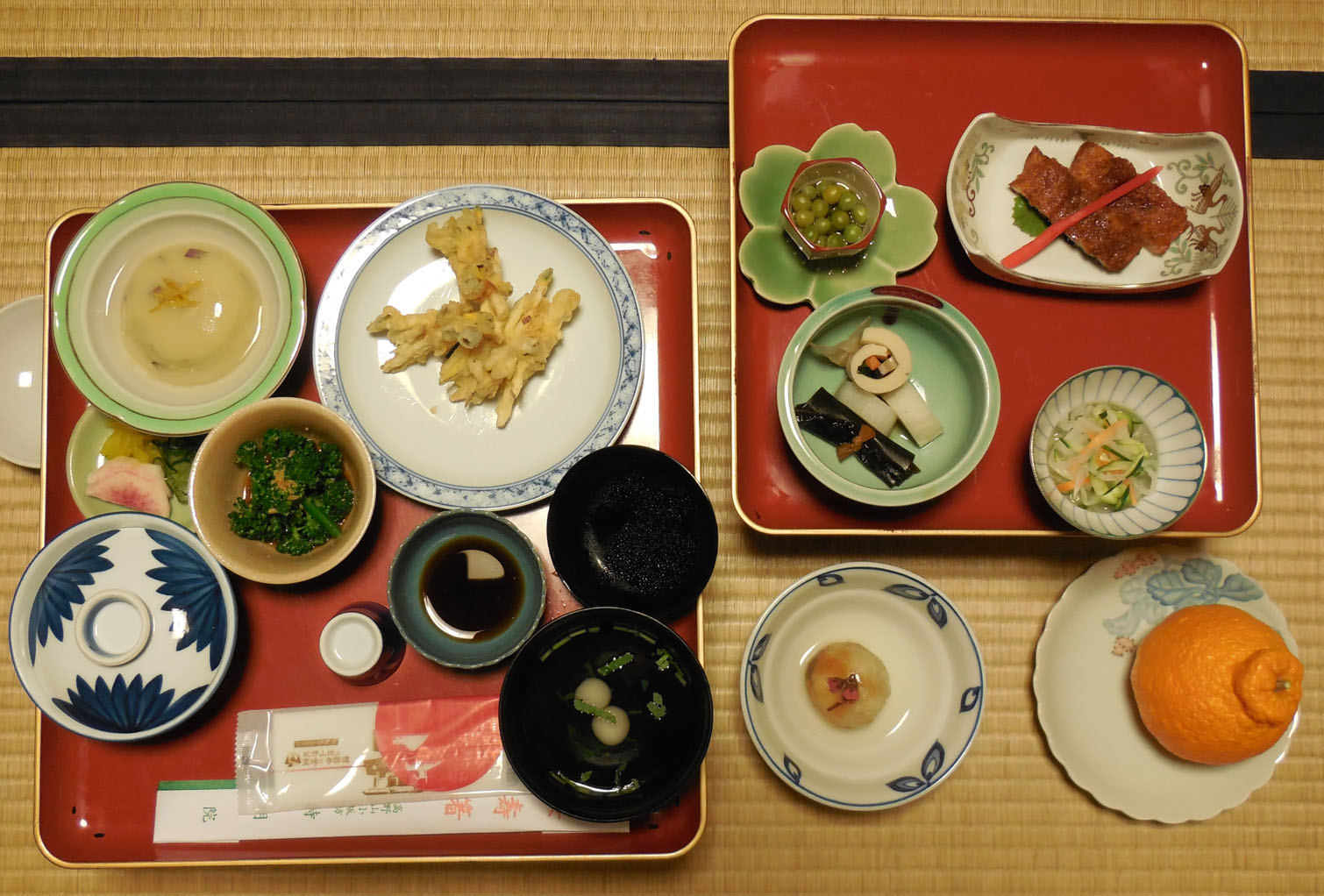 This area of the town is also the home of other major buildings such as the Kongobugi Temple. The rooms of this temple are decorated, in a variety of styles, illustrating the life of Kobo Daishi (the founder of the Shingon sect). Not only were you not allowed to take photos, the signs also specifically forbade sketching. This is what I recall of one room in a series that illustrated the four seasons. This room depicted autumn; yellow and orange maple leaves fell down against a backdrop of gold leaf, a striking deep blue stream ran through the background (this is not included in my version).