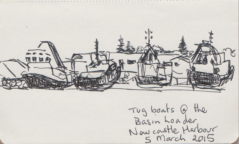 Tugs in Newcastle Harbour, NSW, ballpoint pen, 5 March 2015