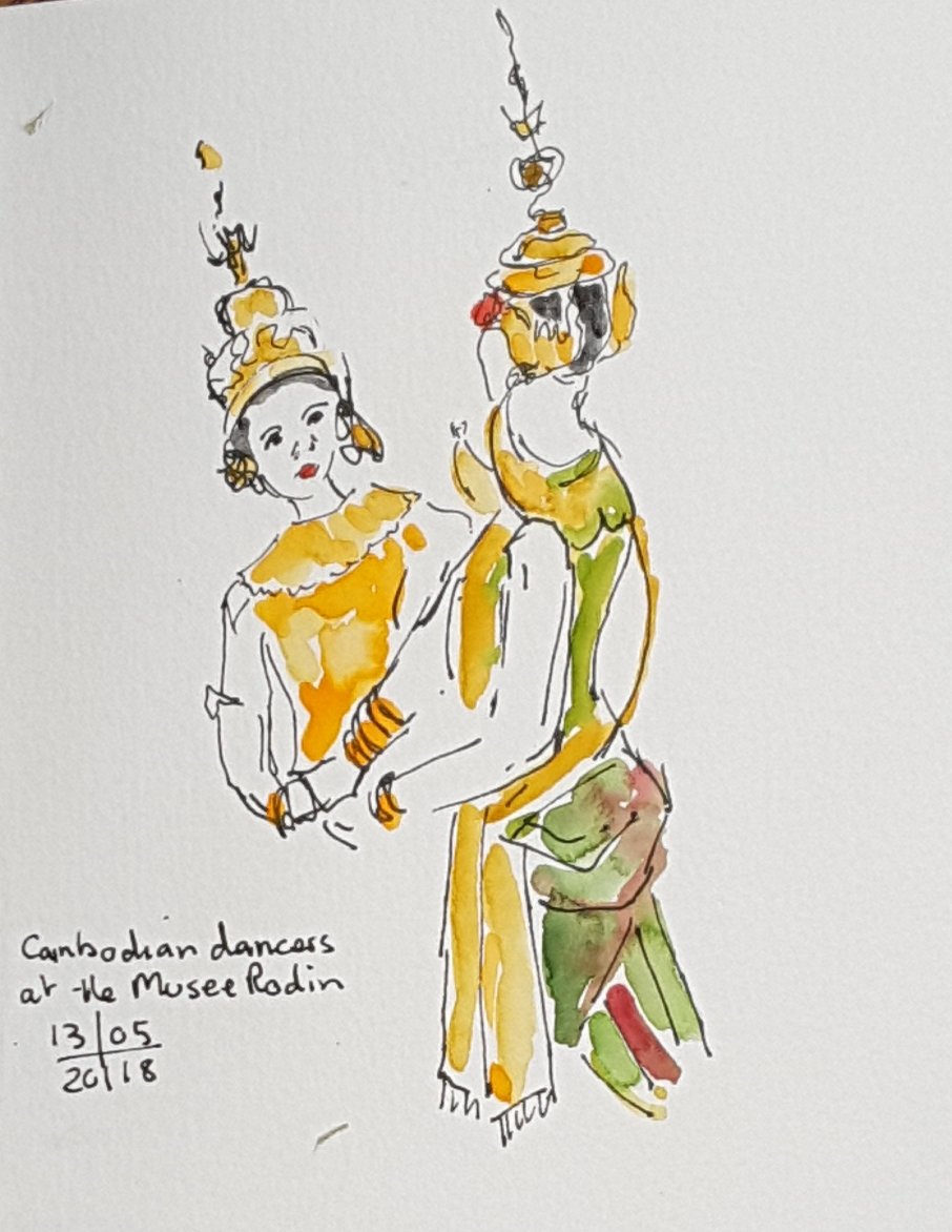 All the sketching was done in the gallery and the watercolour was added afterwards.