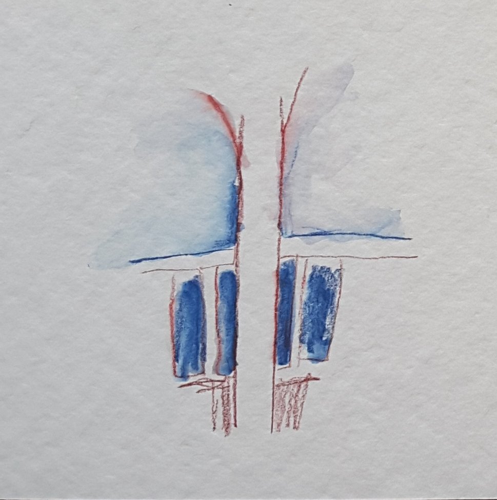 A small sketch using ‘negative space, to make a tree trunk pop out from the over pass railings behind it.