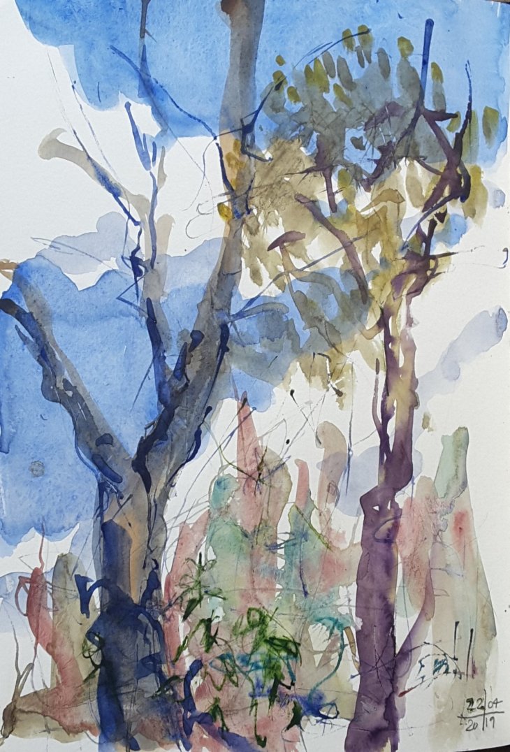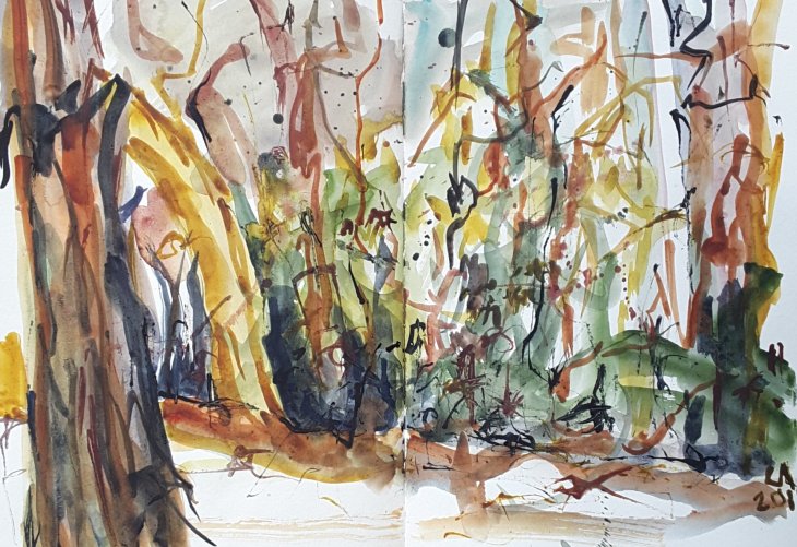 The last thing I sketched in Eindhoven was what I could see from where we were having dinner. Looking at a tower block which was catching the evening sun I tried to use some techniques I had learnt at Symposium. I focused on sketching what I was interested in, not using ‘local’ colour and working using warm and cool colours to highlight the buildings.