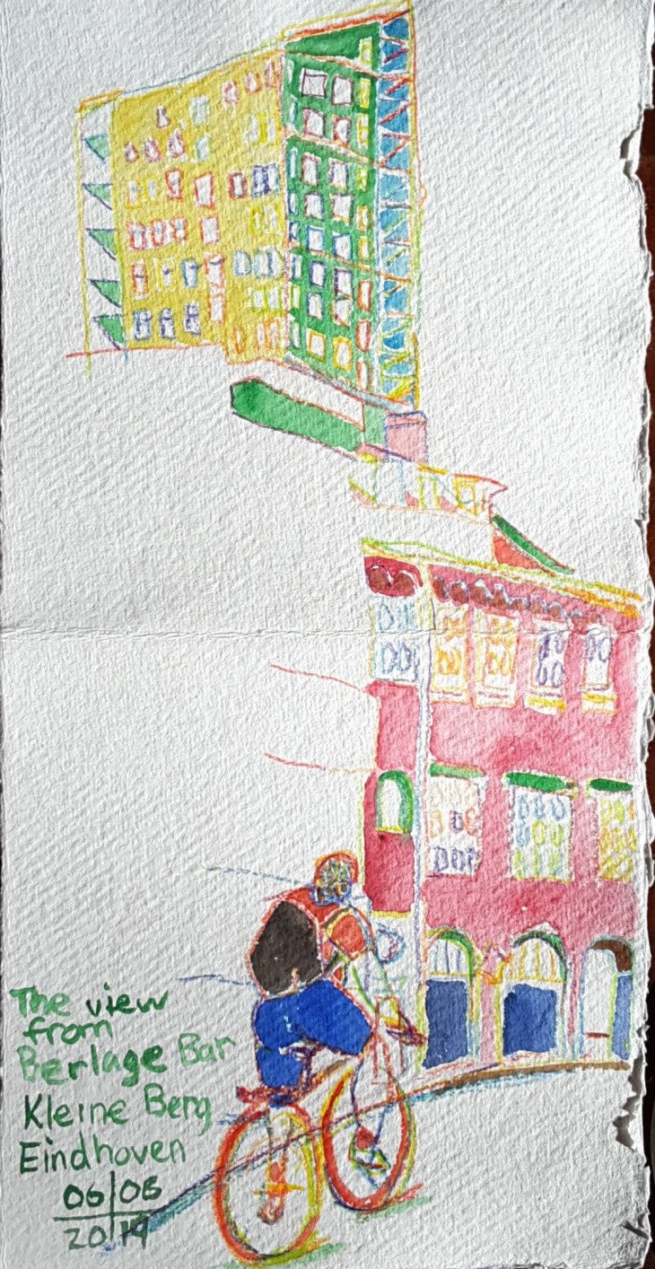 Final sketch of Eindhoven. A pleasant street view with a cyclist turning up at the right moment.