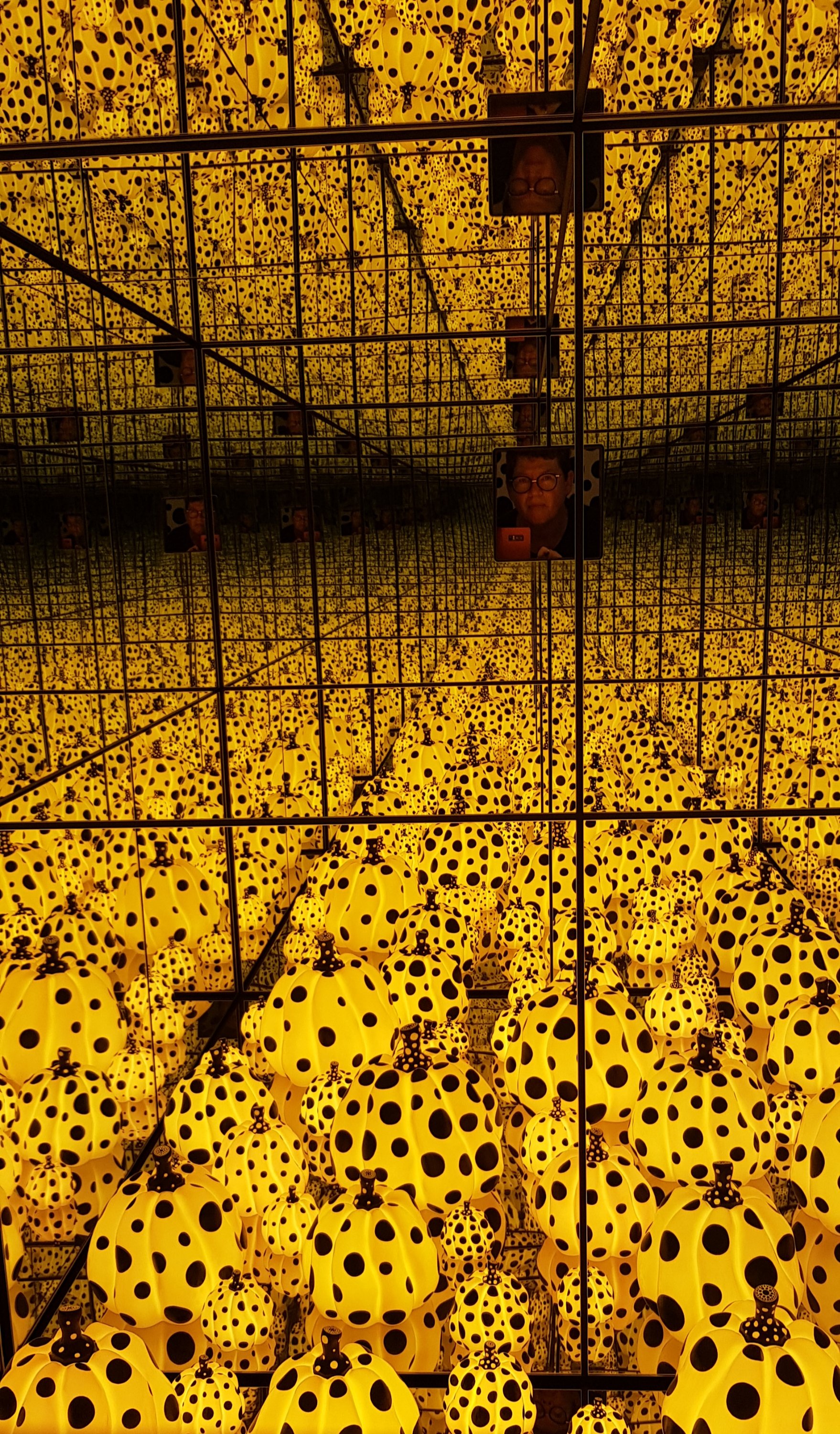 I have long enjoyed seeing the work of Yayoi Kusama and today I got a double shot. We went and saw the documentary about her life and work ‘Kusama-Infinity’ and then drove over to the National Gallery of Australia to see her installation work ‘The Spirits of the Pumpkins Descended into the Heavens.